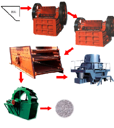 沙石生產(chǎn)線,砂石生產(chǎn)線,砂石生產(chǎn)線設(shè)備,砂石線,砂石生產(chǎn)設(shè)備基本流程:大塊石料經(jīng)料倉由振動(dòng)給料機(jī)均勻地送進(jìn)鄂式破碎機(jī)進(jìn)行粗碎,粗碎后的石料由皮帶輸送機(jī)送到反擊式破碎機(jī)進(jìn)行進(jìn)一步破碎;不滿足粒度要求的石子由皮帶輸送機(jī)返料送到反擊式破碎機(jī)進(jìn)行再次破碎,形成閉路多次循環(huán)。細(xì)碎后的石料由皮帶輸送機(jī)送進(jìn)振動(dòng)篩進(jìn)行篩分,篩分出幾種不同規(guī)格的石子,滿足粒度要求的石子由成品皮帶輸送機(jī)送往成品料堆;成品粒度可按照用戶的需求進(jìn)行組合和分級,為保護(hù)環(huán)境,可配備輔助的除塵設(shè)備。