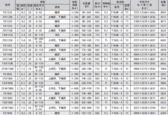YA型圓振動(dòng)篩運(yùn)點(diǎn)軌跡為圓,可廣泛應(yīng)用于選煤選礦、砂石、建材、煤炭等行業(yè)作為分級(jí)物料的通用設(shè)備。YA型圓振動(dòng)篩結(jié)構(gòu)類型
