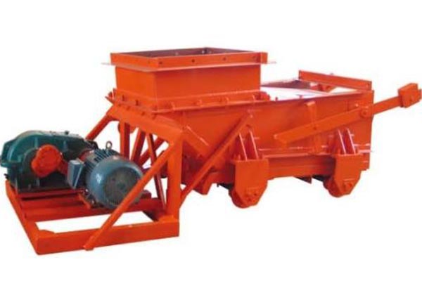 往復(fù)式給煤機由機架、底板(給煤槽)、傳動平臺、漏斗、閘門、托輥等組成。當電機開動后經(jīng)彈性聯(lián)軸器、減速機、曲柄連桿機構(gòu)拖動傾料5°的底板在輥上作直線往復(fù)運動,煤均勻地卸到其他設(shè)備上。往復(fù)式給煤機具有生產(chǎn)能力大、體積小、重量輕、便于安裝、給料調(diào)節(jié)范圍大等優(yōu)點。往復(fù)式給煤機不但能滿足大型高產(chǎn)高校礦井系統(tǒng)的大流量輸送要求,而且大大提高了設(shè)備的工作可靠性和生產(chǎn)的安全性,擴大了生產(chǎn)能力的可調(diào)節(jié)性。